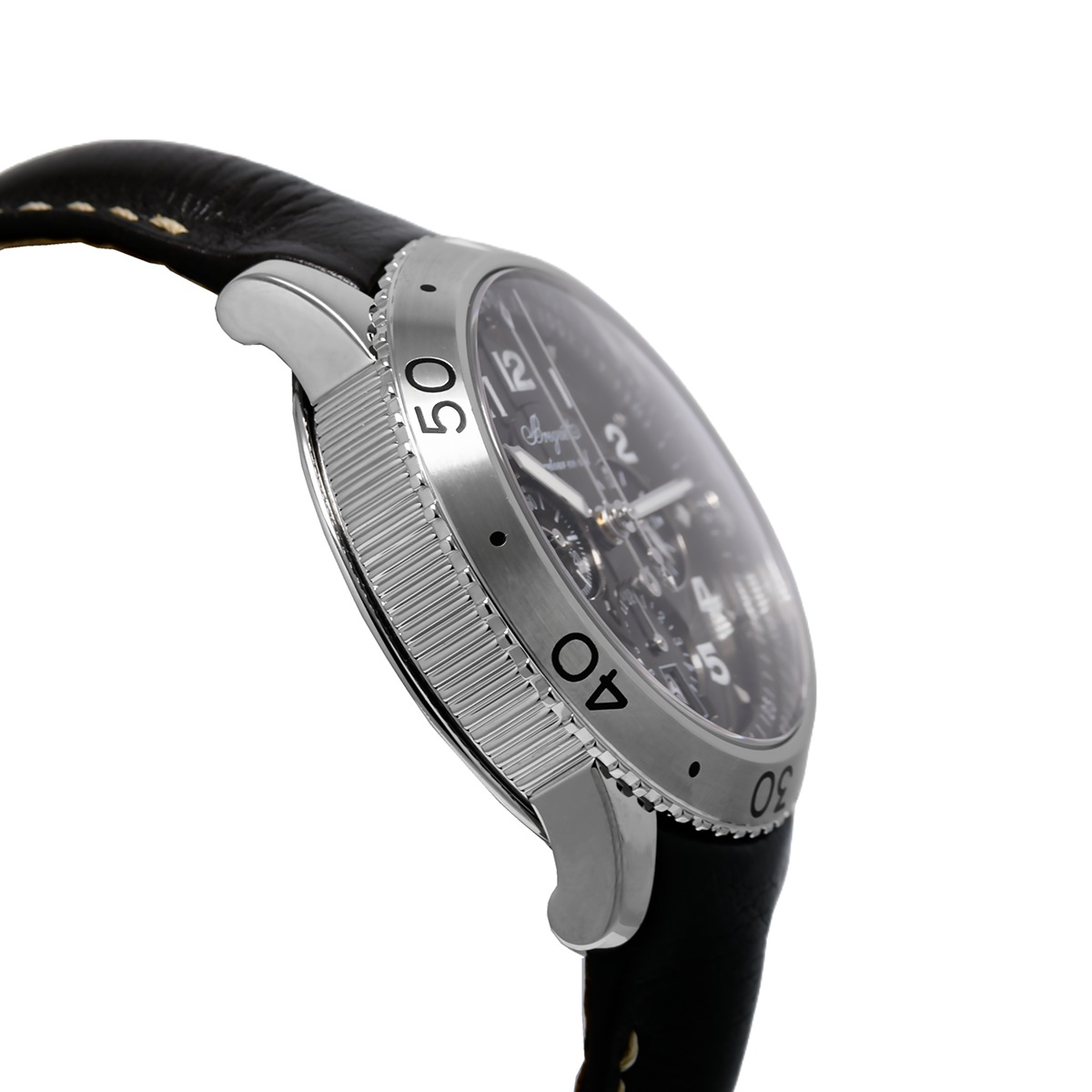 航空部隊ということもあり、飛行中に計時に必要不可欠だったフライバック機構を搭載。これまでは30分積算計だったインダイアルは24時間表示のデイナイトインジケーターへと変更され、60分の積算計はクロノグラフ秒針の下にあります。元々は軍用とは思えないほど、高級感があります。