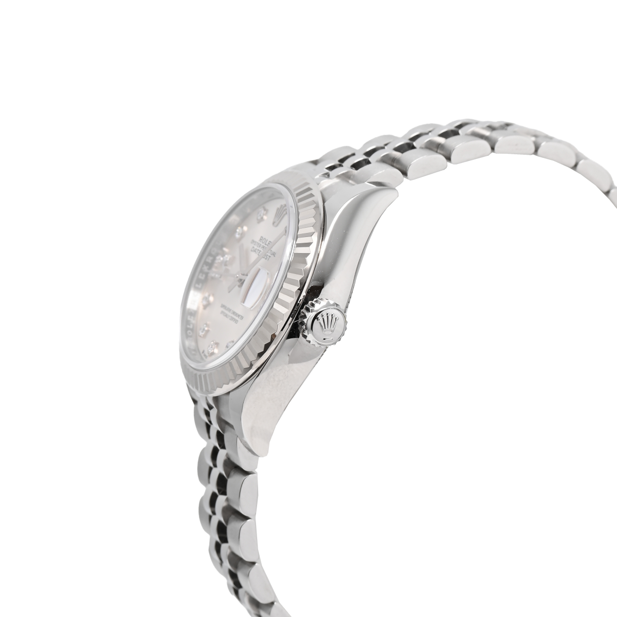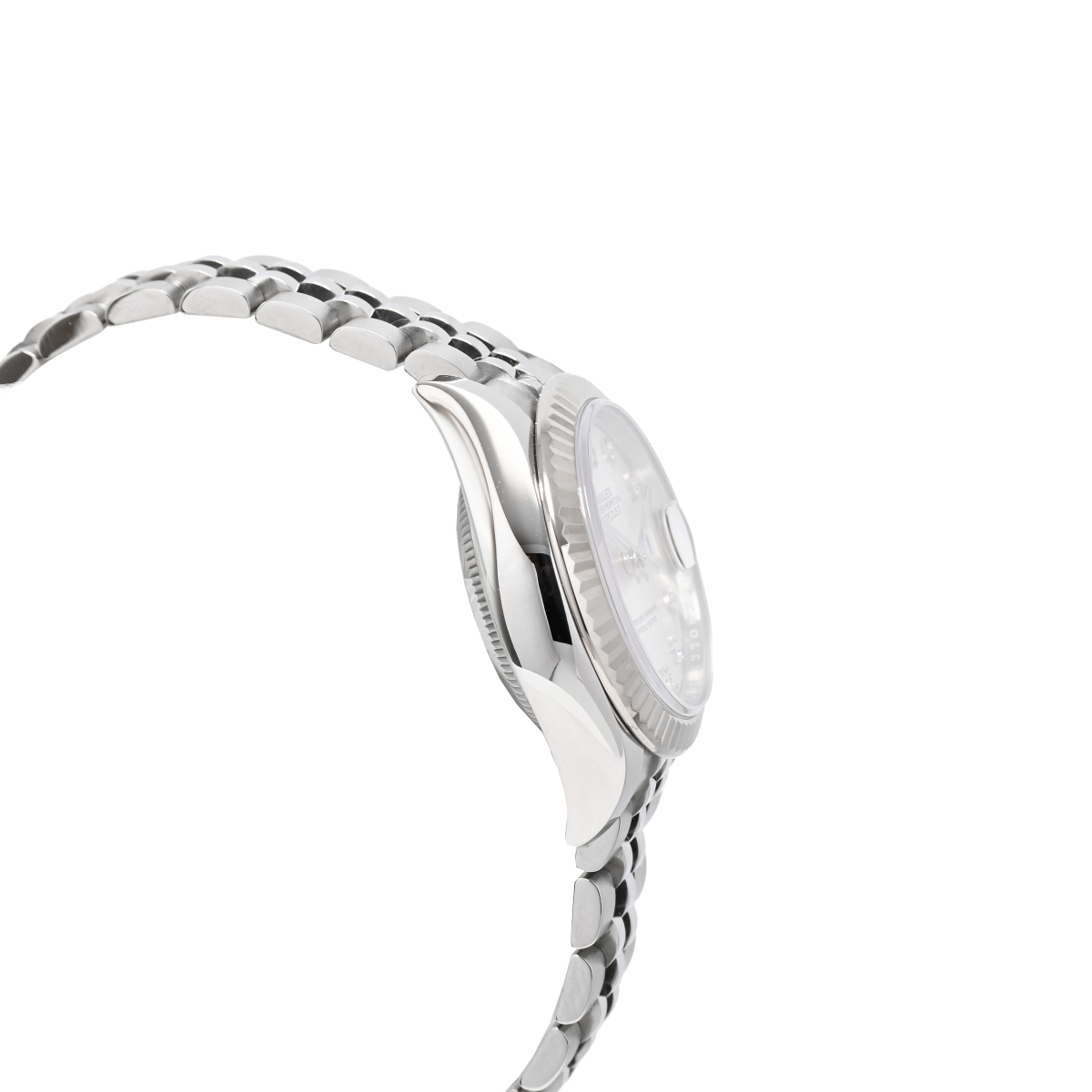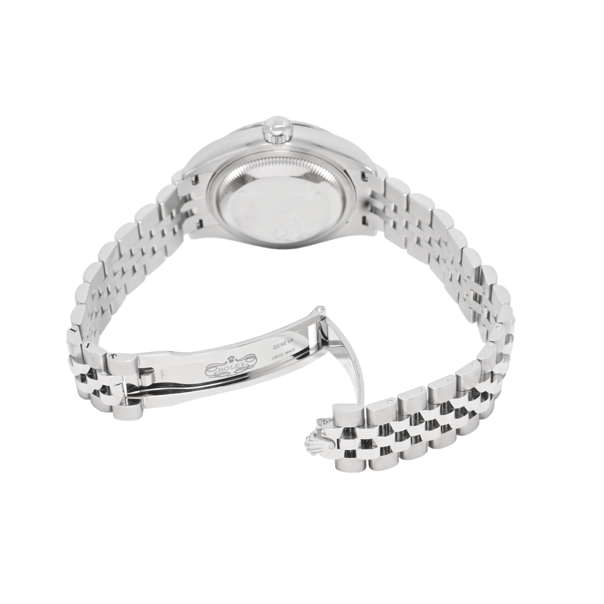 「279174G」はロレックスの「デイトジャスト 28」女性向けのケースサイズ、ステンレスとホワイトゴールドのフルーテッドベゼルでジュビリーブレスレット、そしてダイヤモンドインデックスが特徴。エレガントで高級感のある人気モデルです。落ち着いたピンクやダークグレーなど、様々な文字盤カラーがあり、ビジネスからフォーマルまで幅広いシーンで使え万能性が魅力な1本です。
