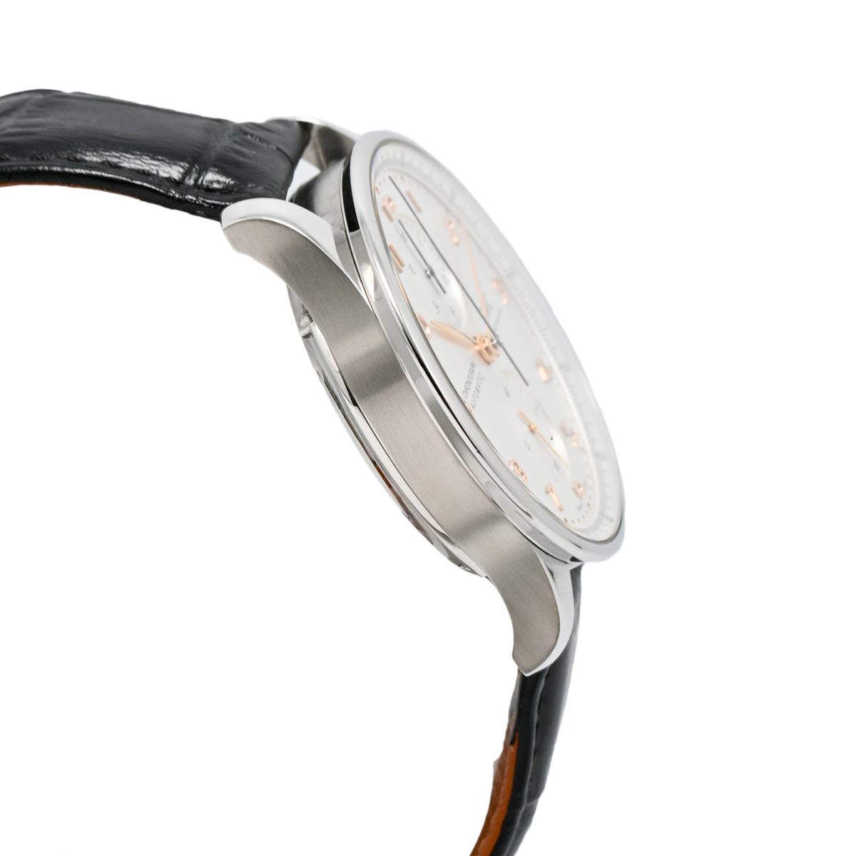 IWCを代表するモデルである「ポルトギーゼ」。本モデルは、落ち着きのあるシルバーダイヤルにリーフ針とアラビアインデックスが映える、気品と視認性を兼ね備えたデザインが特徴です。